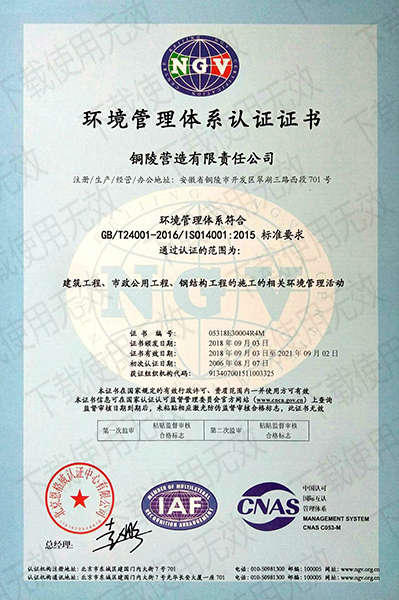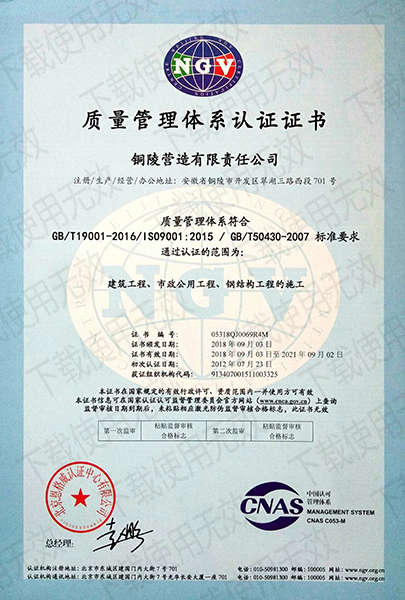 銅陵?duì)I造有限責(zé)任公司是國家住建部核準(zhǔn)的房屋建筑總承包一級企業(yè)。2006年7月,企業(yè)二次改制為民營企業(yè),并更名為“銅陵?duì)I造有限責(zé)任公司”。目前,公司擁有房建施工總承包、市政公用工程總承包、鋼結(jié)構(gòu)專業(yè)工程承包、建筑裝修裝飾專業(yè)工程承包四項(xiàng)壹級資質(zhì),機(jī)電安裝、起重設(shè)備安裝、建筑幕墻三項(xiàng)貳級資質(zhì),地基與基礎(chǔ)一項(xiàng)叁級資質(zhì)。2008年通過北京恩格威ISO9001、ISO14001和OHSAS18001“三合一”體系認(rèn)證。